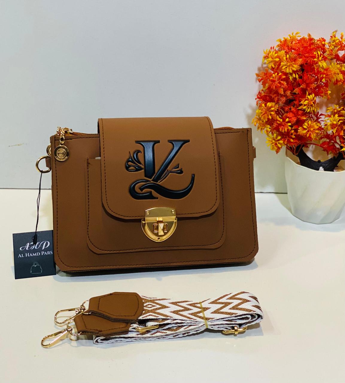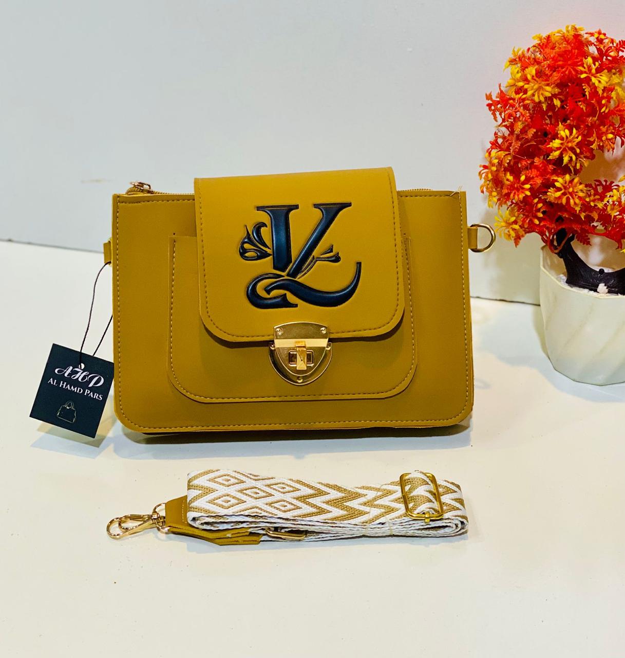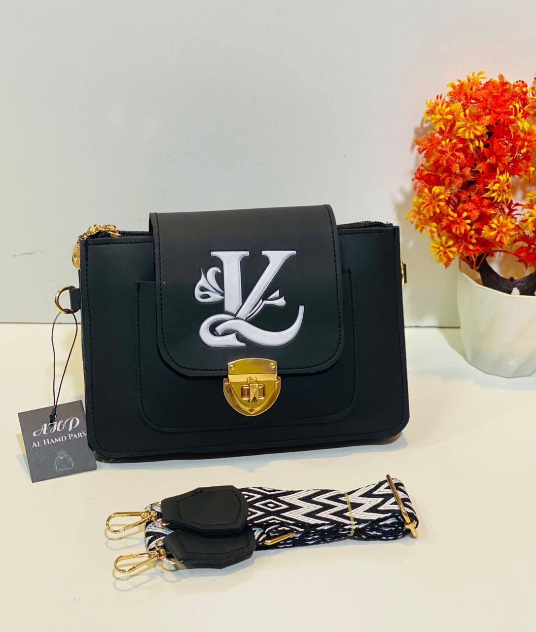 This chic handbag features a gold clasp and comes with a trendy woven strap, combining elegance and practicality for any occasion.